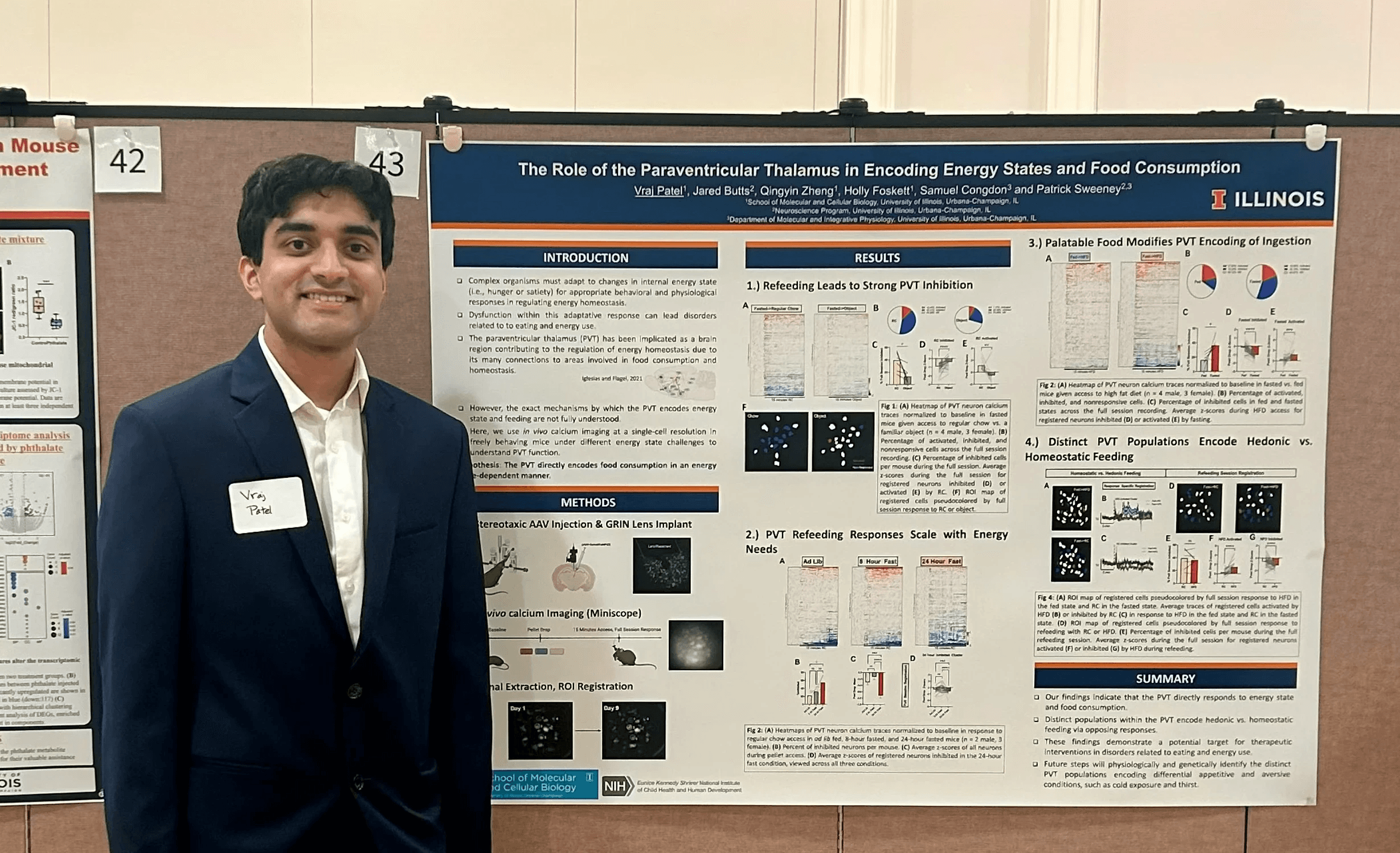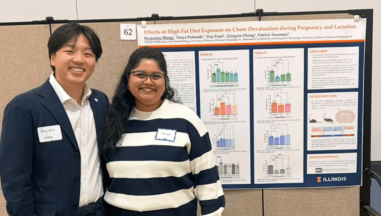 Emma presented a poster at the Undergradate Research Symposium. Aarav's photograph "Love at a Microscopic Scale: Heart in Brain Tissue" was displayed in the Image of Research Competition.